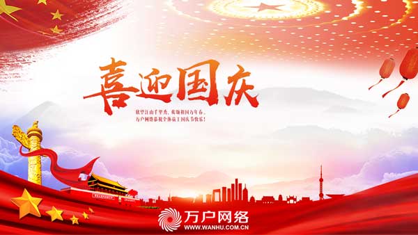 金秋十月迎國慶,舉國同慶賀生辰;繁花似錦添新顏,樂曲如潮唱和平;祖國繁榮享生活,闔家歡樂品幸福。時值國慶節(jié)來臨之際,萬戶網(wǎng)絡(luò)祝各位新老客戶國慶快樂!